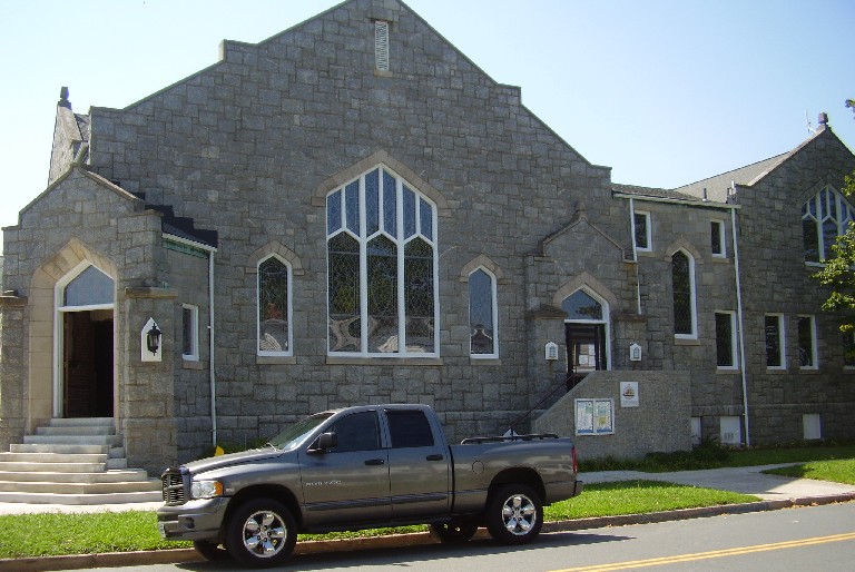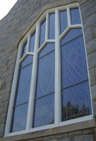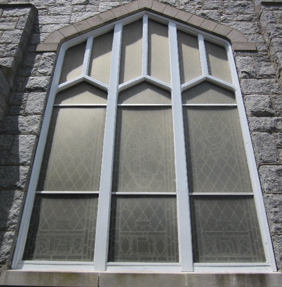 Cape Charles Presbyterian School with new 1/4" Lucite protective covering over their leaded stained glass windows