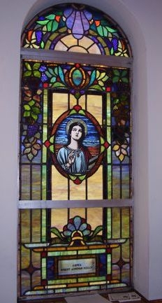New opalescent glass windows installed in 1958 by Laws