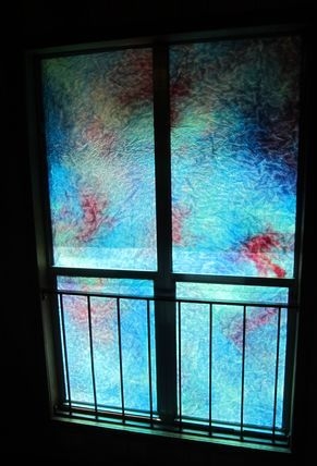 Opalescent window with dark bronze aluminum frames & 1/4" Lucite acrylic as the protective covering