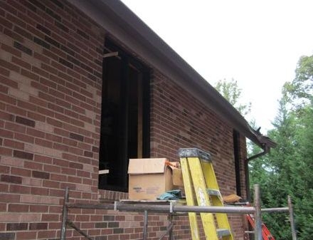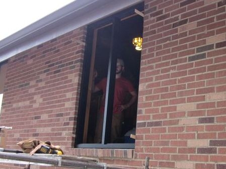New windows with dark bronze aluminum frames & 1/4" Lucite as protective covering