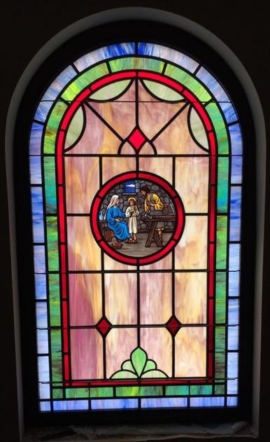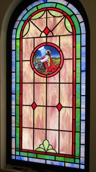 In 2016, Laws Stained Glass Studios installed (10) opalescent glass windows at Kyuka Missionary Baptist Church in Attalla, AL. The church was building a new sanctuary and needed some round top windows. The eight main windows (size 36" wide x 72" high with a round top) and the two smaller windows (size 36" wide x 60" high with a round top) each have a 12" round Biblical scenes from the life of Christ. The windows do not have memorial plates.