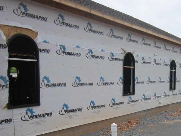 Outside view of the dark bronze aluminum frames installed into the stud openings.