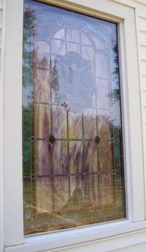 Opalescent glass window with 1/4" Lucite acrylic as the protective covering on the outside