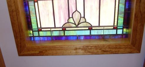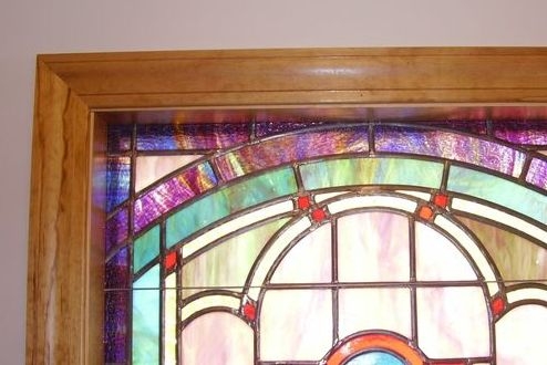 Opalescent glass window with 12" x 16" medallion