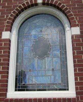 One of the smaller windows with a 12" x 16" medallion and memorial plate