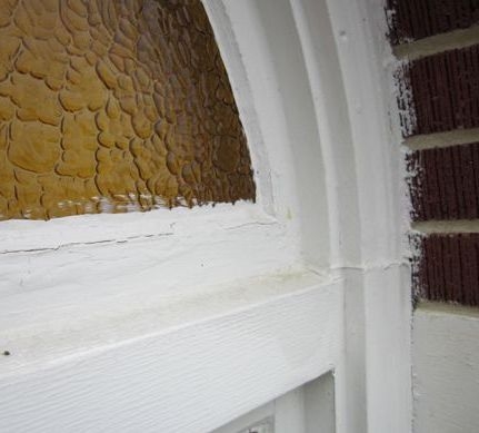 Close-up of the top of an existing, sanctuary window from the outside.