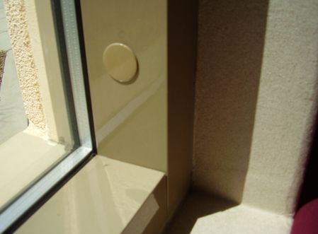 Close-up of the bottom of the window showing the installation into the existing aluminum frame showing the steel braces