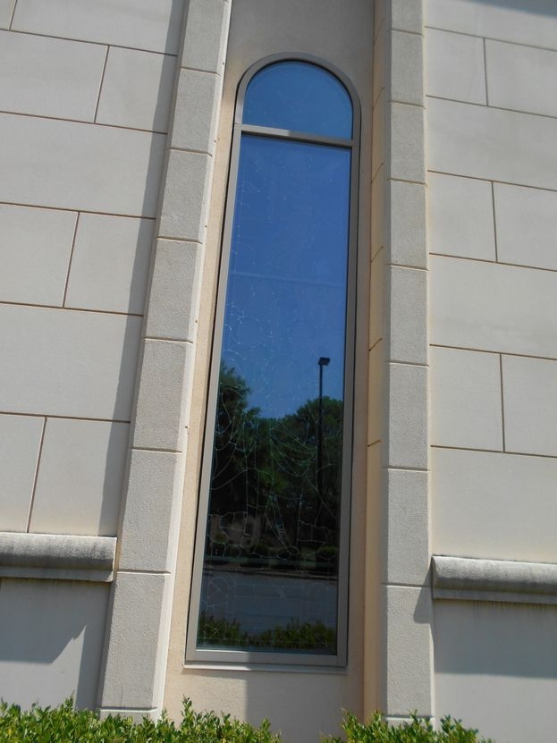 View of the Ascension window from the outside. This window had an existing aluminum frame with a tinted insulated glass unit as the protective covering.