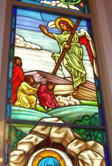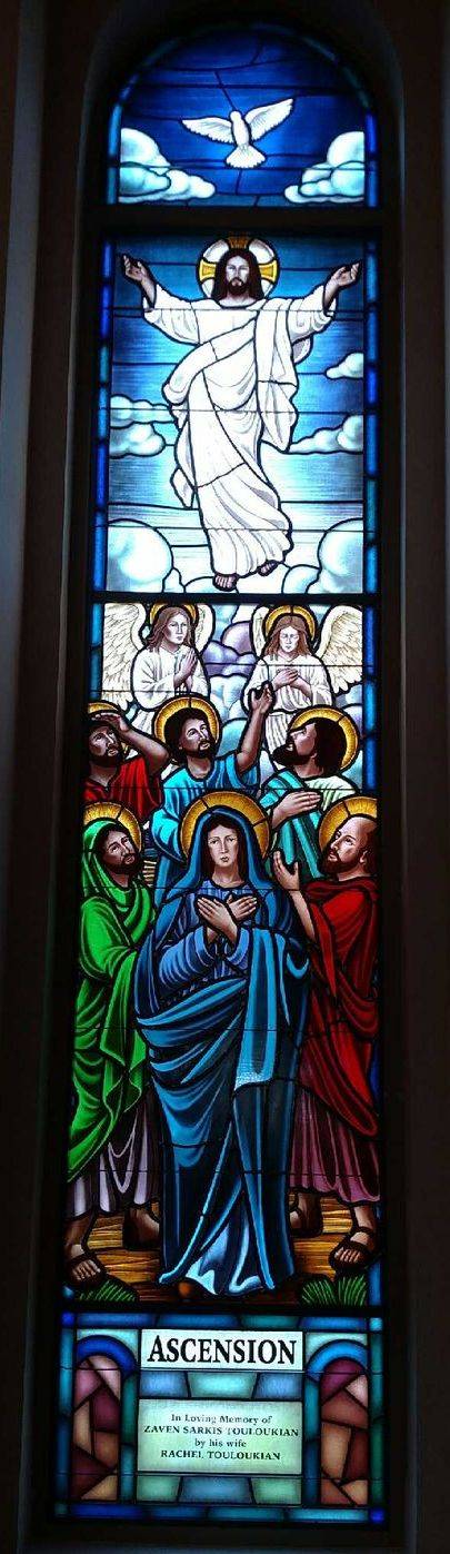Hand-stained pictorial glass window of "The Ascension"