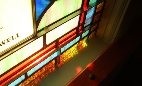 Close-up of opalescent glass window with 1/4" Lucite acrylic as the protective covering