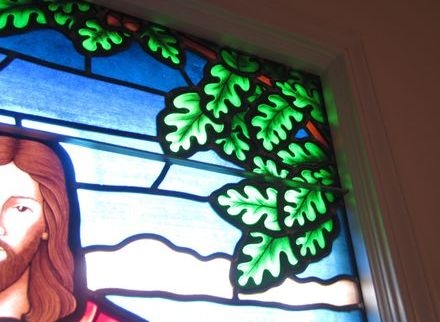 In 2012, Laws Stained Glass Studios installed (8) hand-stained pictorial glass windows for the sanctuary at Amanda Pentecostal Holiness Church in Florence, SC. Each window depicts a scene from the "Life of Christ" series: "Sermon on the Mount", "Walking on Water", "Jesus, Mary, & Martha", "Blessing the Little Children", "Garden of Gethsemane", "Knocking at the Door", "Good Shepherd", and "Come Unto Me". All of the windows were painted by Laws' artist Nina Haynes. Laws installed these windows into the existing wood frame, which required sawing out a vertical and horizontal wood bar. On the exterior, Laws installed 1/4" Lucite acrylic as the protective covering.