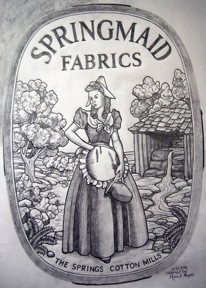 In 2016, Laws Stained Glass Studios provided a hand-stained glass window for Springland, Inc. in Fort Mill, SC. The window (size 23" wide x 33" high) contains a hand-stained glass scene of the company's logo for Springmaid Fabrics, which was painted by Laws' artist Nina Haynes. Laws also provided a dark bronze aluminum frame and 1/4" tempered plate glass as the protective covering.