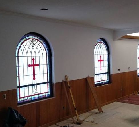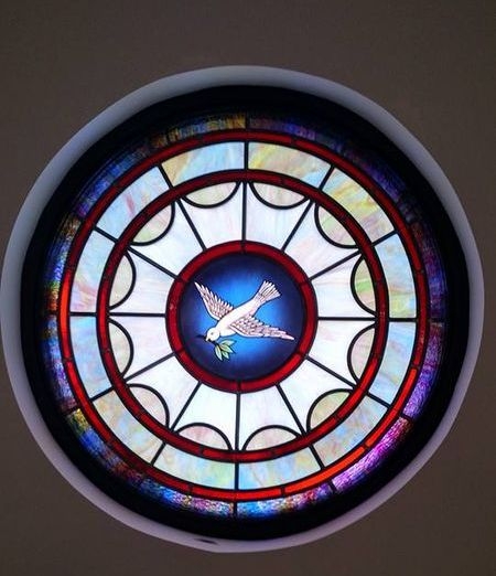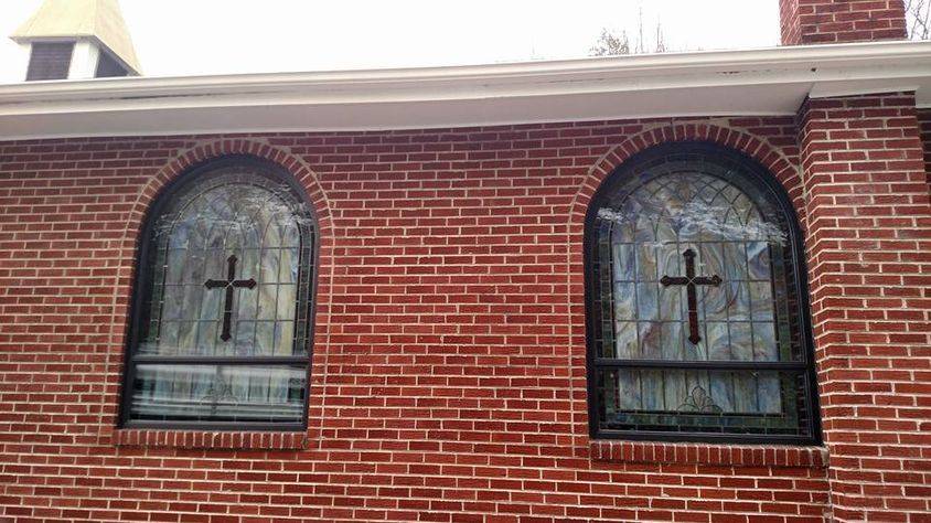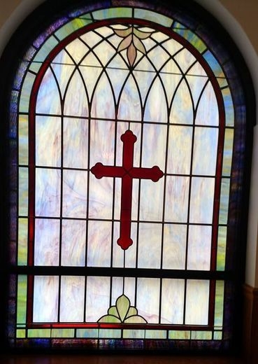 Stained Glass Windows at Covy Rock Free Will Baptist Church in Green Mountain, NC