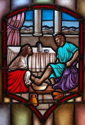 18" x 26" shield-shaped medallion of "Washing Disciples Feet"