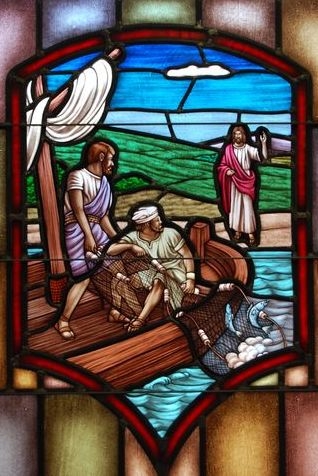 18" x 26" shield-shaped medallion of "Calling the Disciples"