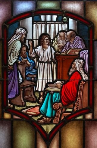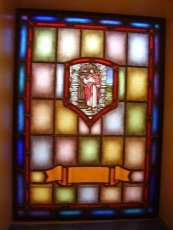 New hand-stained glass windows with 18" x 26" shield-shaped medallions with scene from the "Life of Christ" series