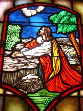 Close-up of the "Garden of Gethsemane" scene in an 18" x 26" shield-shaped medallion