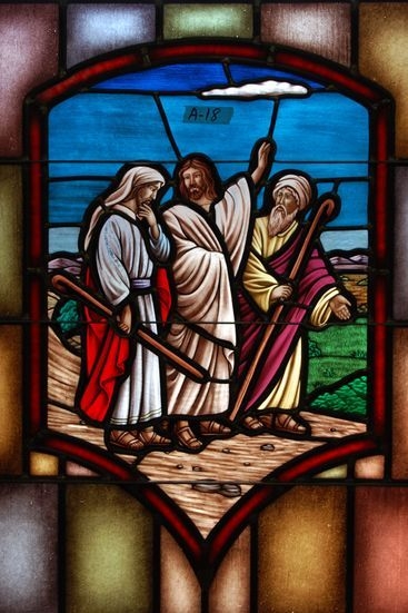18" x 26" shield-shaped medallion of "Road to Emmaus"