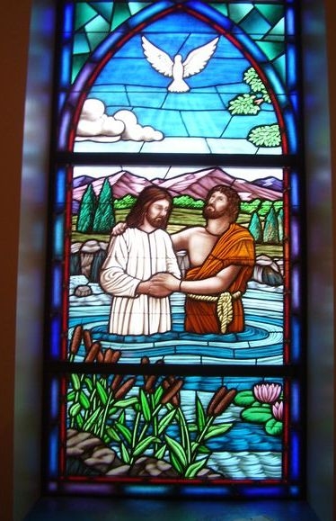 Hand-Stained Pictorial Glass Window of the "Baptism"