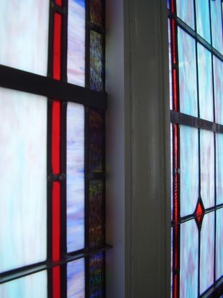 New opalescent glass windows with 12" x 16" hand-stained medallions