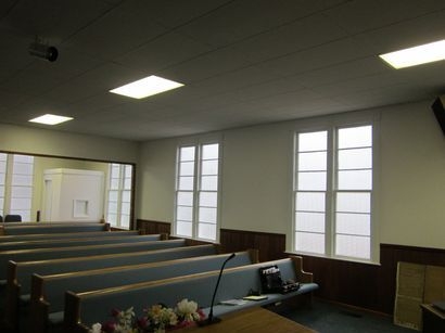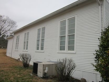 In 2013, Laws Stained Glass Studios installed 14 opalescent glass windows with 12" x 16" medallions depicting Biblical scenes and 1/4" Lucite protective covering at Chattooga Baptist Church in LaFayette, GA. Laws removed the existing wood sashes and installed the new leaded windows (size 29" wide x 97" high) into the existing wood frames. On the outside, Laws installed 1/4" Lucite as the protective covering. Each window has a Biblical scene from the "Life of Christ" series.