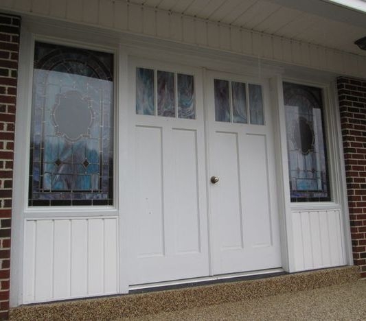 Installing opalescent glass without lead into the lights of the front doors