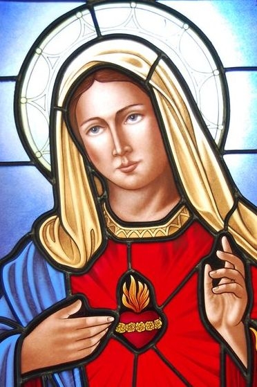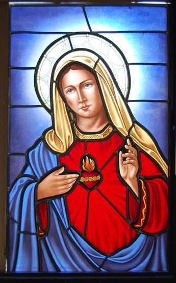 Hand-Stained Pictorial glass window of "Mary, mother of Jesus"