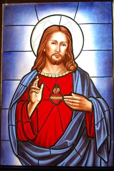 Hand-Stained Pictorial glass window of "Jesus Christ" before shipping