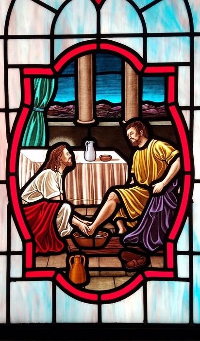 Close-up of 18" x 26" medallion of "Washing the Disciples' Feet"
