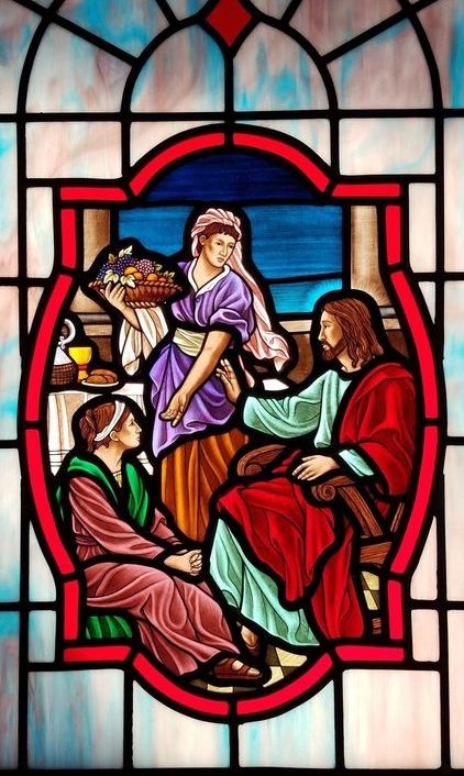 Close-up of 18" x 26" medallion of "Jesus, Mary, & Martha"