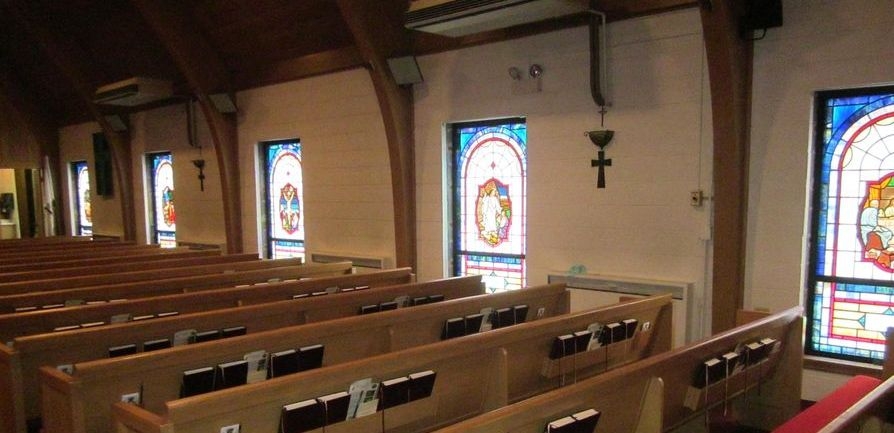 View of the newly installed windows on the other side of the sanctuary