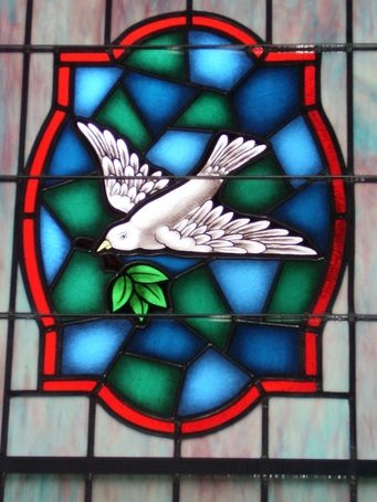 Close-up of the "Peace Dove" symbol