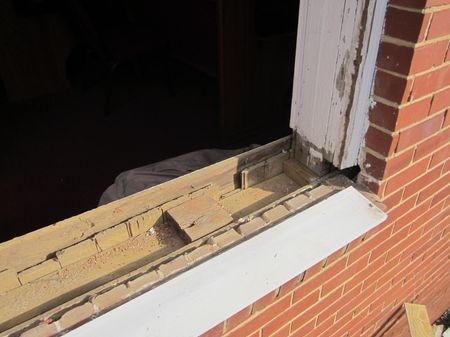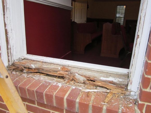 With the wood sash set aside, here you can see the removal of the rotten sill