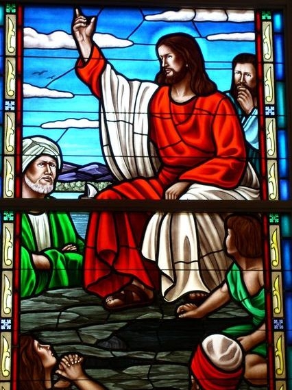 Close-up of the "Sermon on the Mount" window