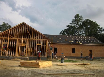 New sanctuary being built with help from "Carpenters for Christ" from Prattville, AL in June 2012