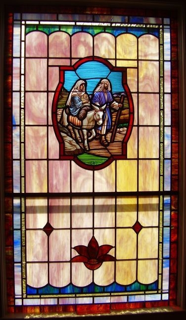New opalescent glass window with a 18" x 26" hand-stained medallion of the "Flight to Egypt"
