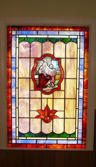 In 2009, Laws Stained Glass Studios installed (10) opalescent glass windows at Red Oak Baptist Church in Warwick, GA. The eight main windows (size 44" wide x 77" high) contained a 18" x 26" hand-stained glass medallion with a scene from the "Life of Christ". The two smaller windows (size 36" wide x 54" high) each had a 12" x 16" medallion with a Biblical scene. The windows did not have memorial plates.