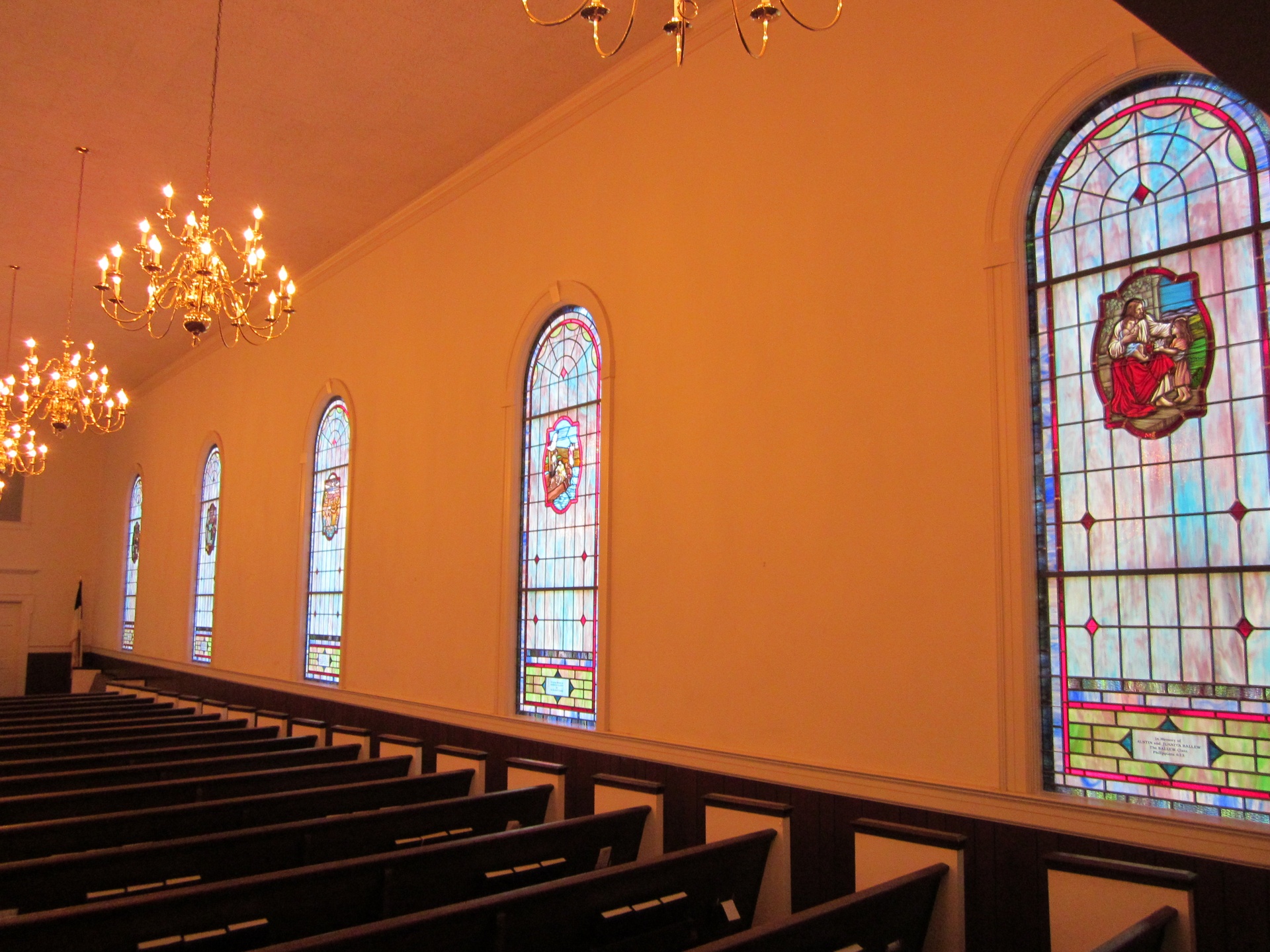Check out the opalescent glass windows at Laurel Baptist Church in Greenwood, SC!