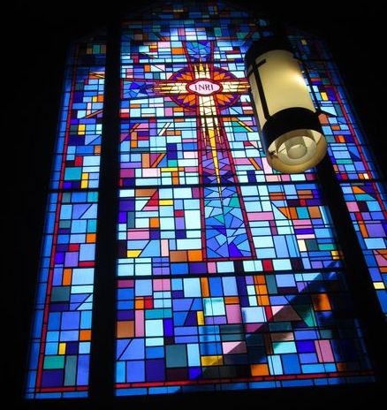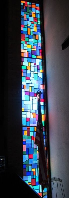 Cathedral glass window with no artwork installed in 1996