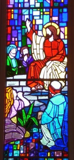 Close-up of the "Sermon on the Mount" window