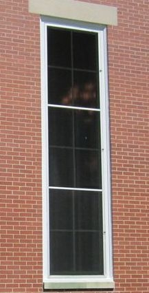 Exterior view of the faceted glass windows installed into the existing wood frames