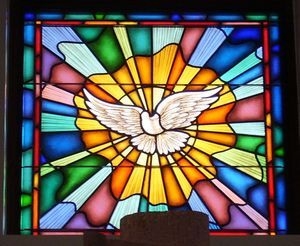 In the 1960s or so, some church furnishings began offering a cheap alternative to leaded glass windows called krinkle glass. Krinkle glass is fiberglass that allows some light to shine through it. Most of the time, the krinkle glass is only about 1/16 to 1/8" thick which can easily be punched through with a fist. Some of the krinkle glass windows would have symbols imprinted onto them. In addition to being very thin and weak, the colors of the krinkle glass fade over time. Krinkle glass is not "stained glass".
