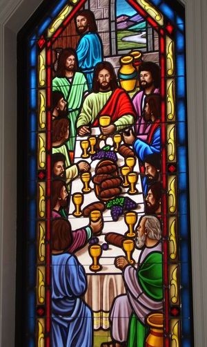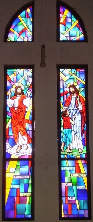Hand-Stained Pictorial Glass Window at Bethany Christian Church in Arapahoe, NC