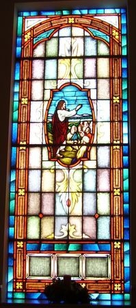 In 1974, Laws Stained Glass Studios provided (22) hand-stained glass windows for Mt. Pisgah Baptist Church in Jefferson, SC. The eight main windows (size 51" wide x 128" high) contained 20" x 36" hand-stained glass medallions with Biblical scenes. The other windows contained 12" round symbols except for the six in the balcony area. All windows were designed by Laws' artist Paul Gentry.