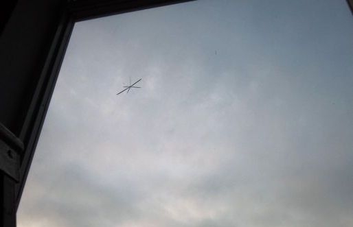Close-up showing a cracked piece of Lucite acrylic where it had apparently protected the opalescent glass window from flying debris.
